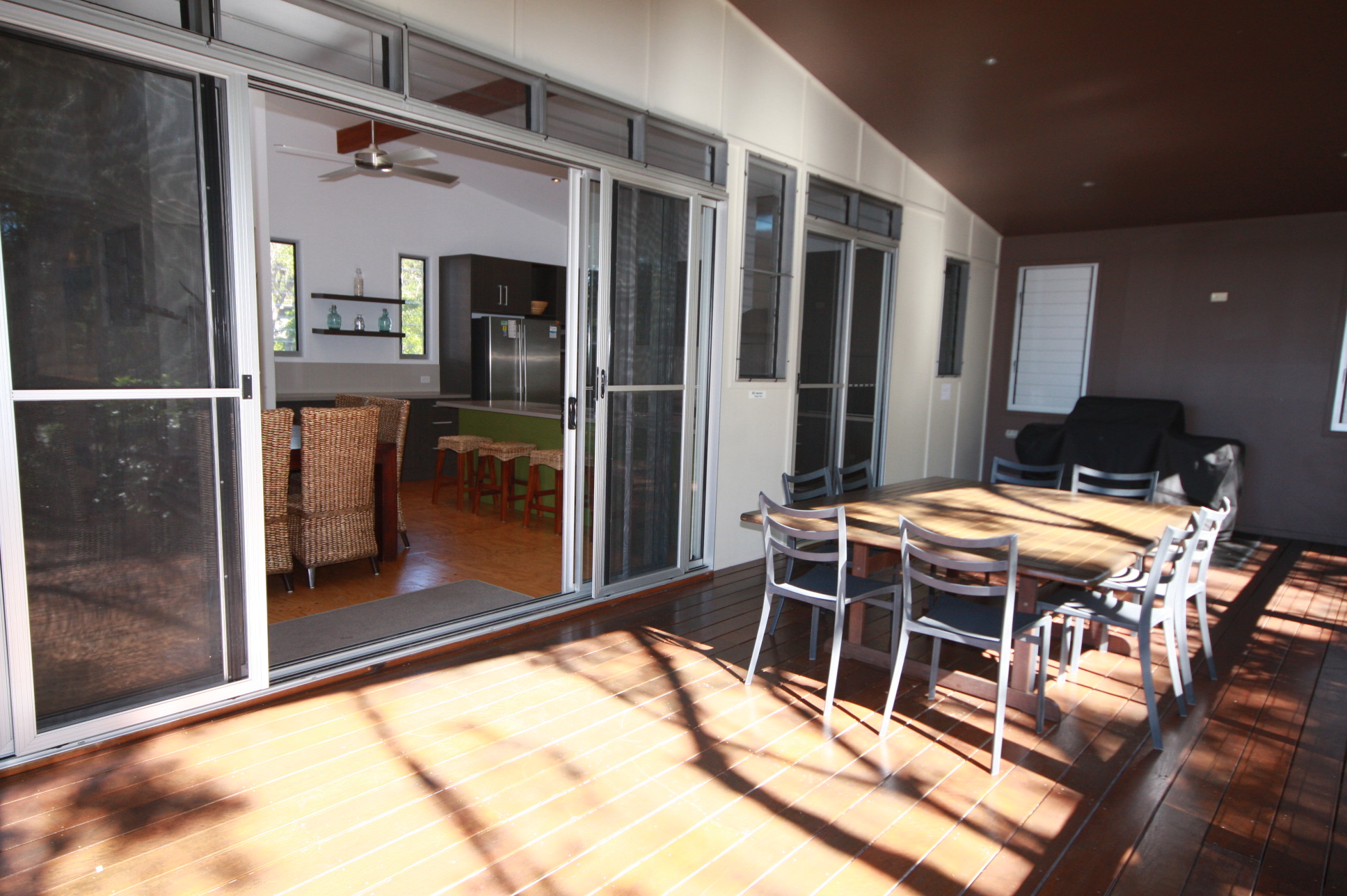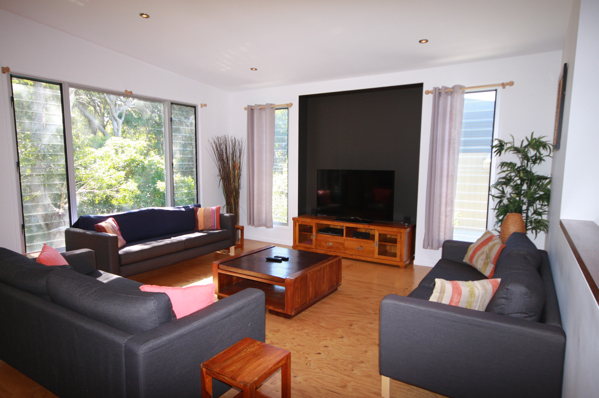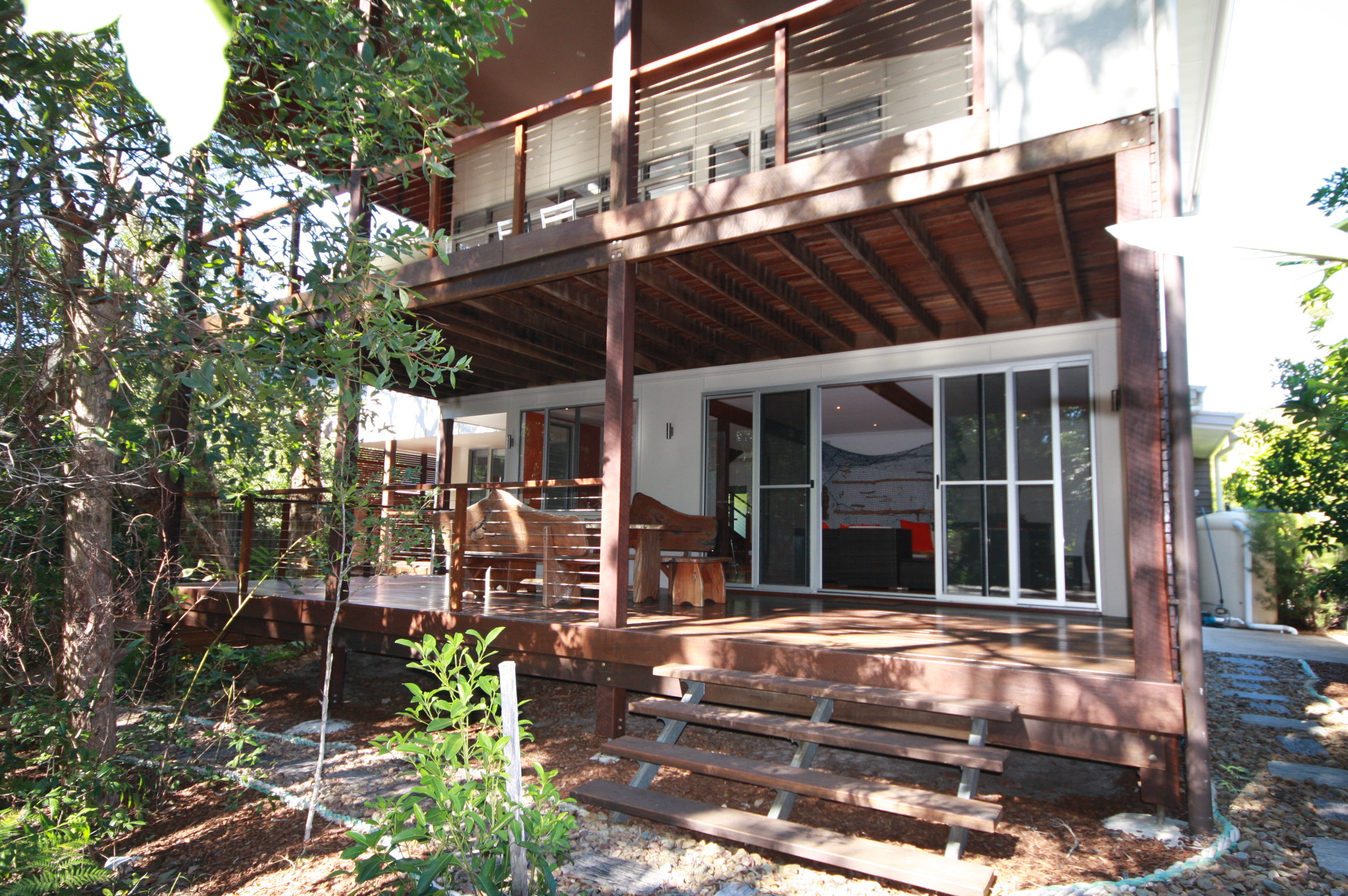 This is truly a magnificent holiday home. Melaleuca Beach House is a tranquil, peaceful place, which you will find hard to leave. The 'Melaleuca' is a native paper-bark tree found in the natural bushland of Rainbow Shores and surrounds the rear of the house. This property has been designed to capture the magic of these beautiful trees and beach setting.