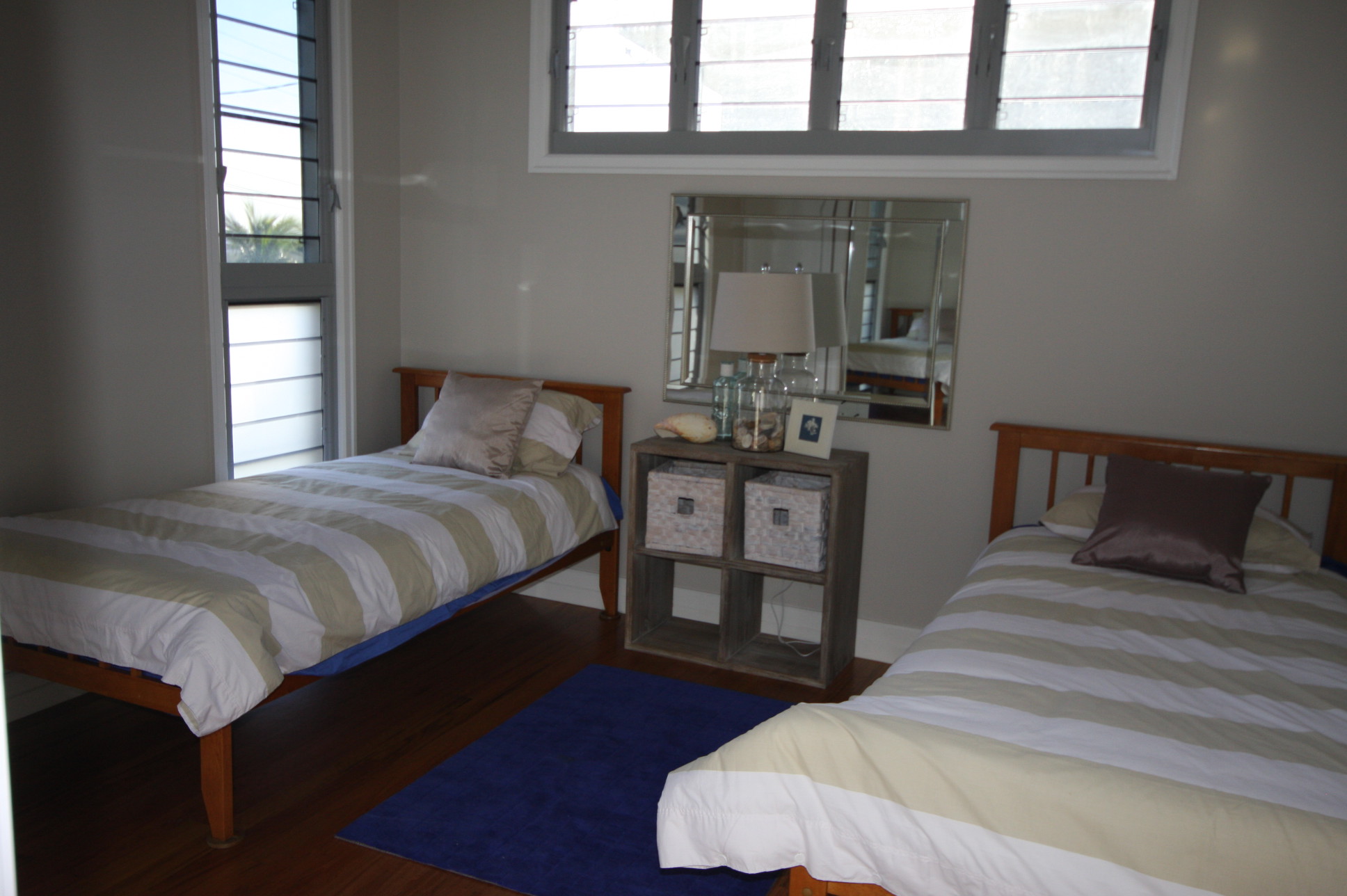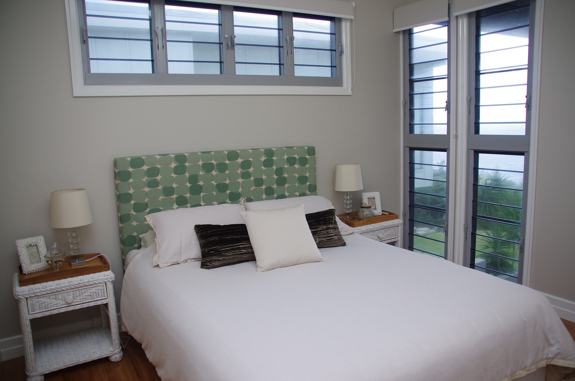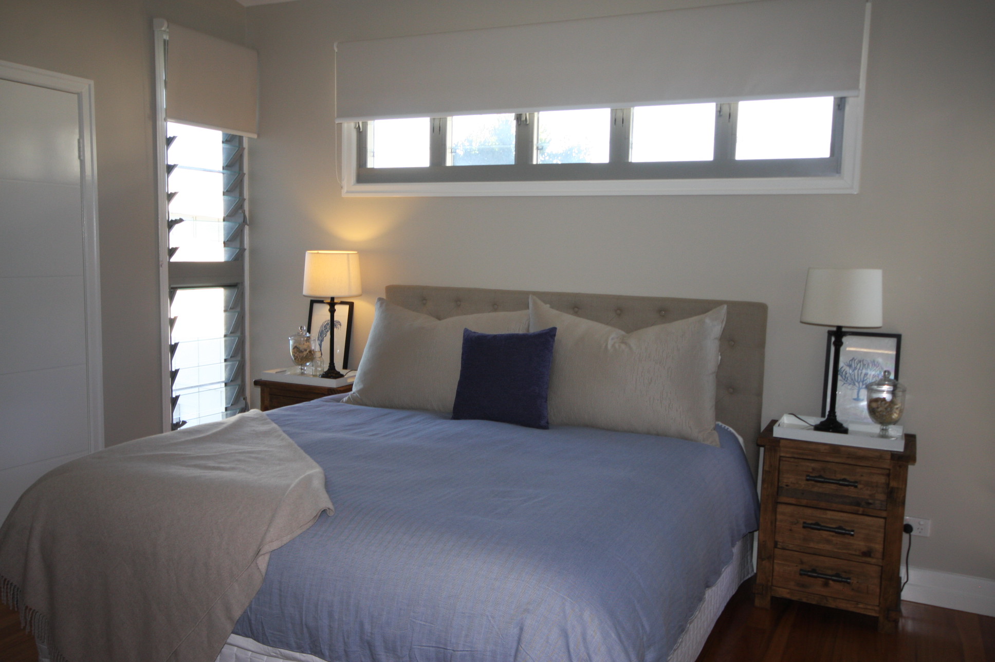 BEDROOMS: 1 Bedroom located downstairs featuring a Queen size bed, study and wall flat screen TV. The sliding glass doors provide you our own feature water views, while also giving you your private access to the great outdoors.
