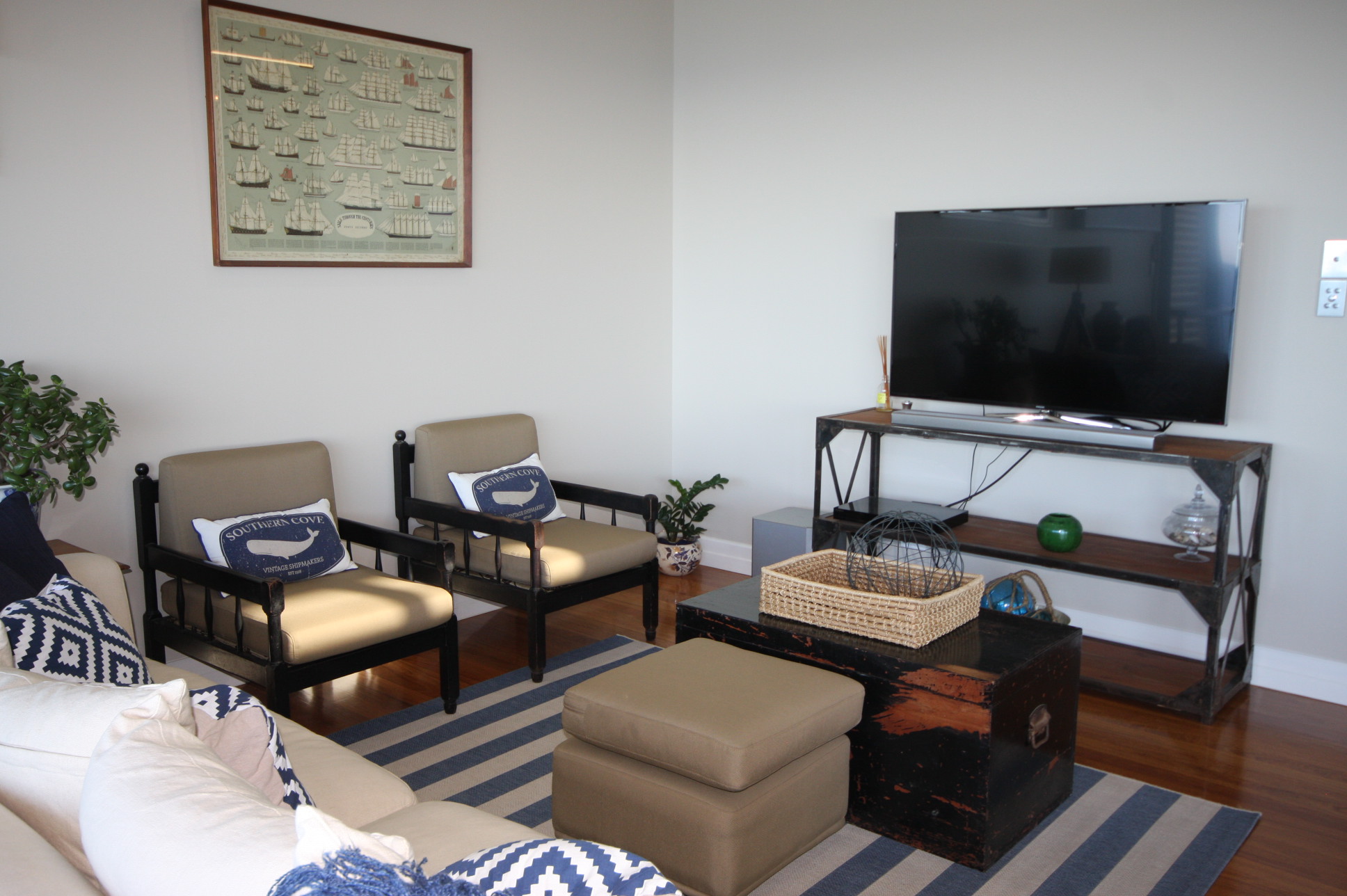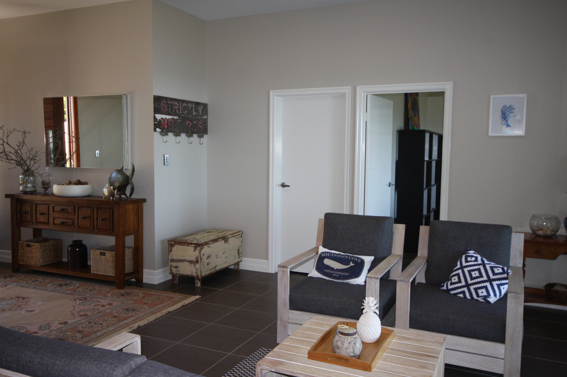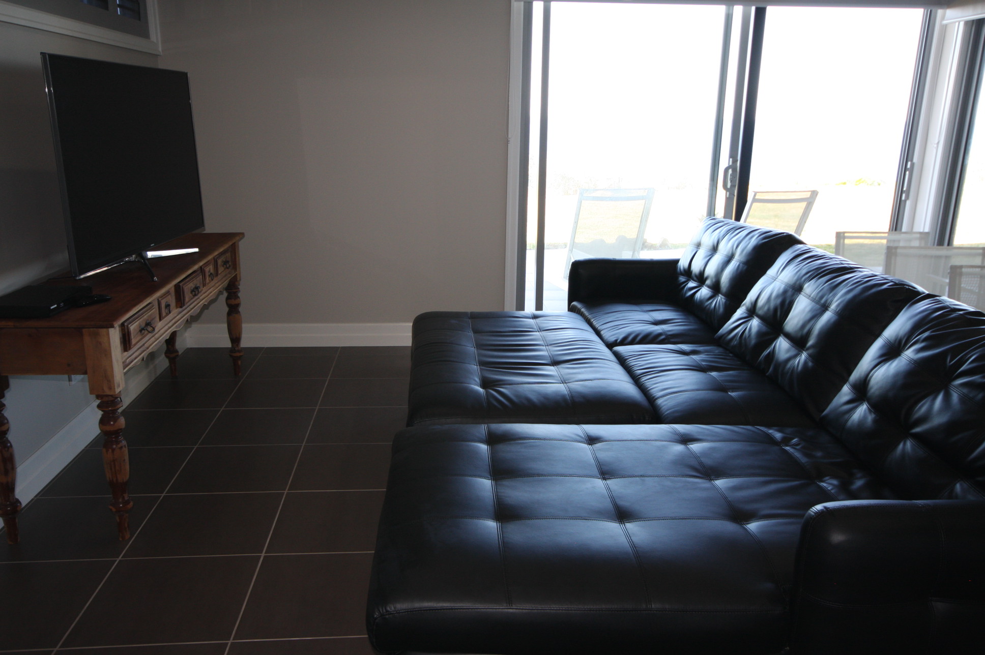BEDROOMS: 1 Bedroom located downstairs featuring a Queen size bed, study and wall flat screen TV. The sliding glass doors provide you our own feature water views, while also giving you your private access to the great outdoors.