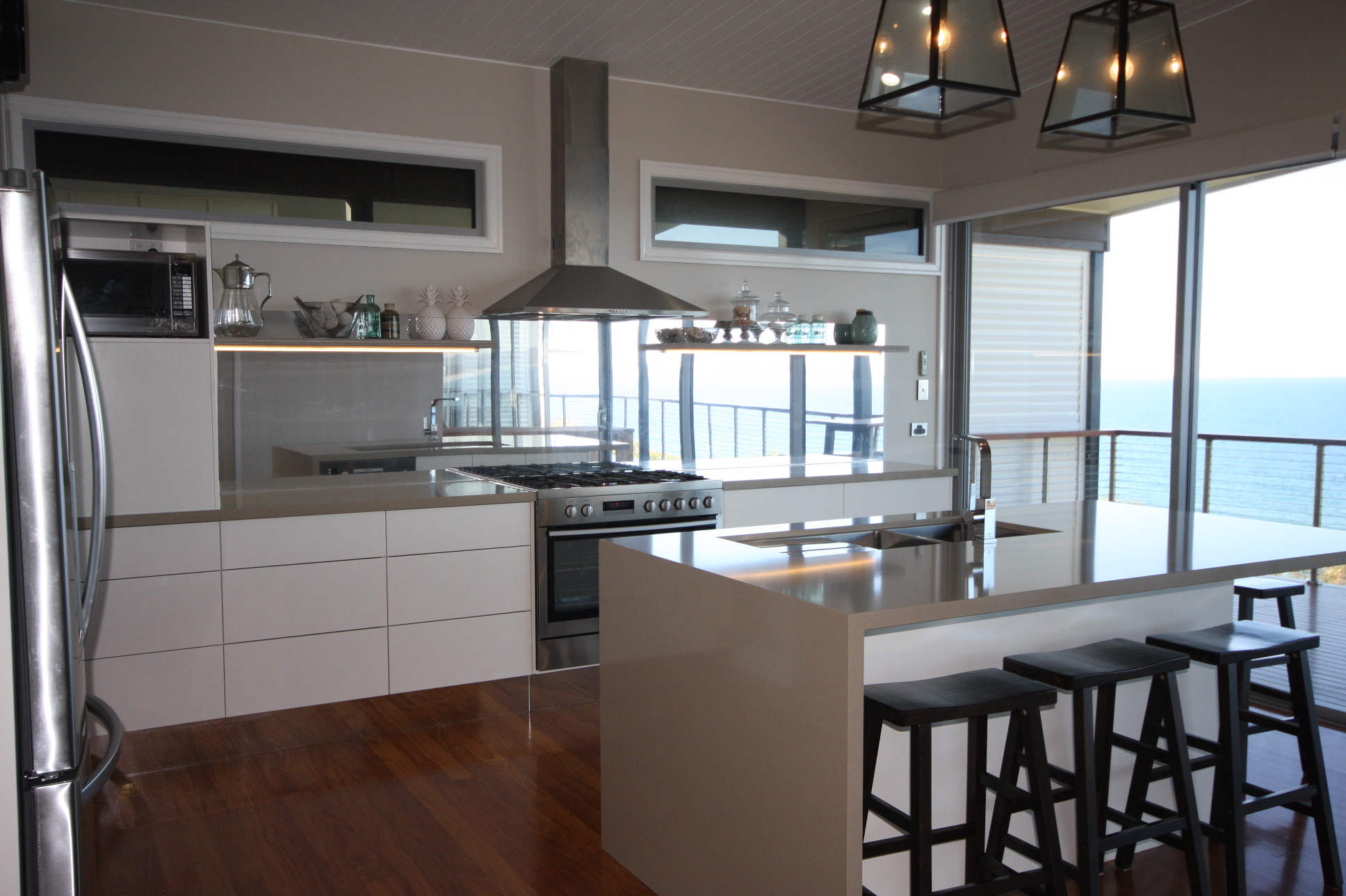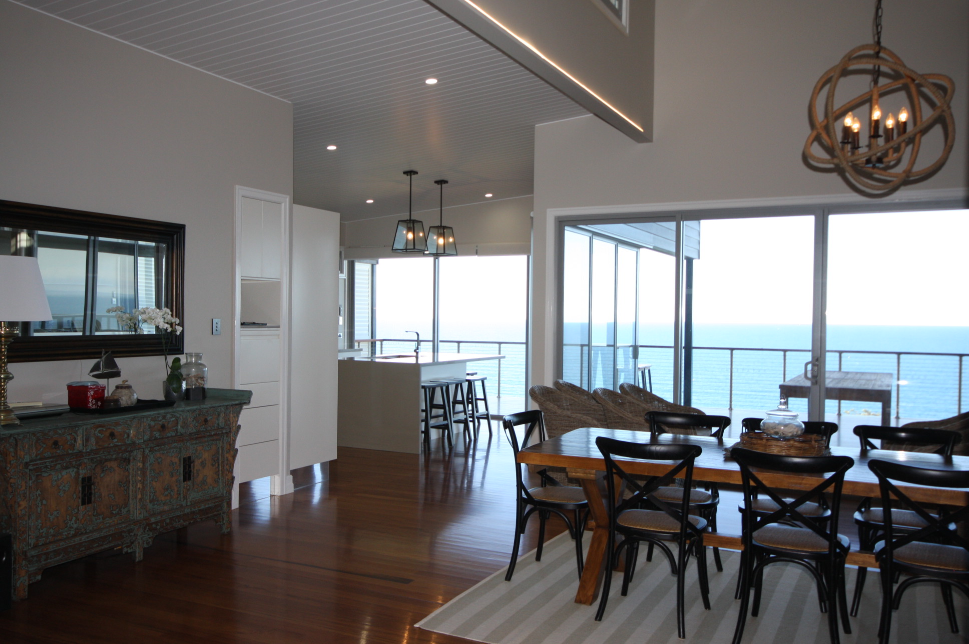 KITCHEN & DINING: This state of the art kitchen has all the wow factors to die for! The blinds are electronically operated as are the drawers and cupboards making your whole stay nothing but luxurious and spoilt. The splash back captures the views perfectly and gives spending time in the kitchen a whole new dimension.