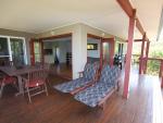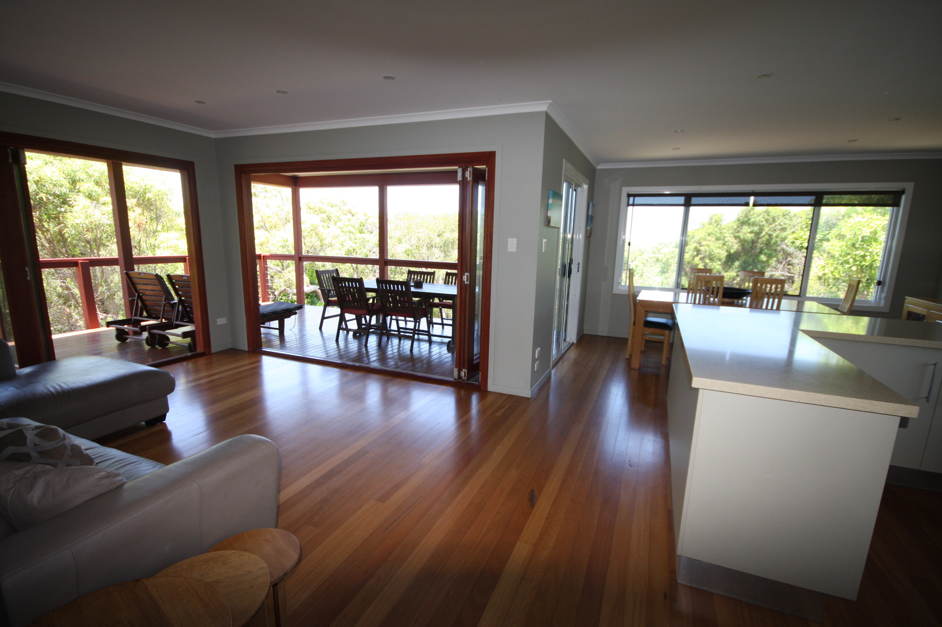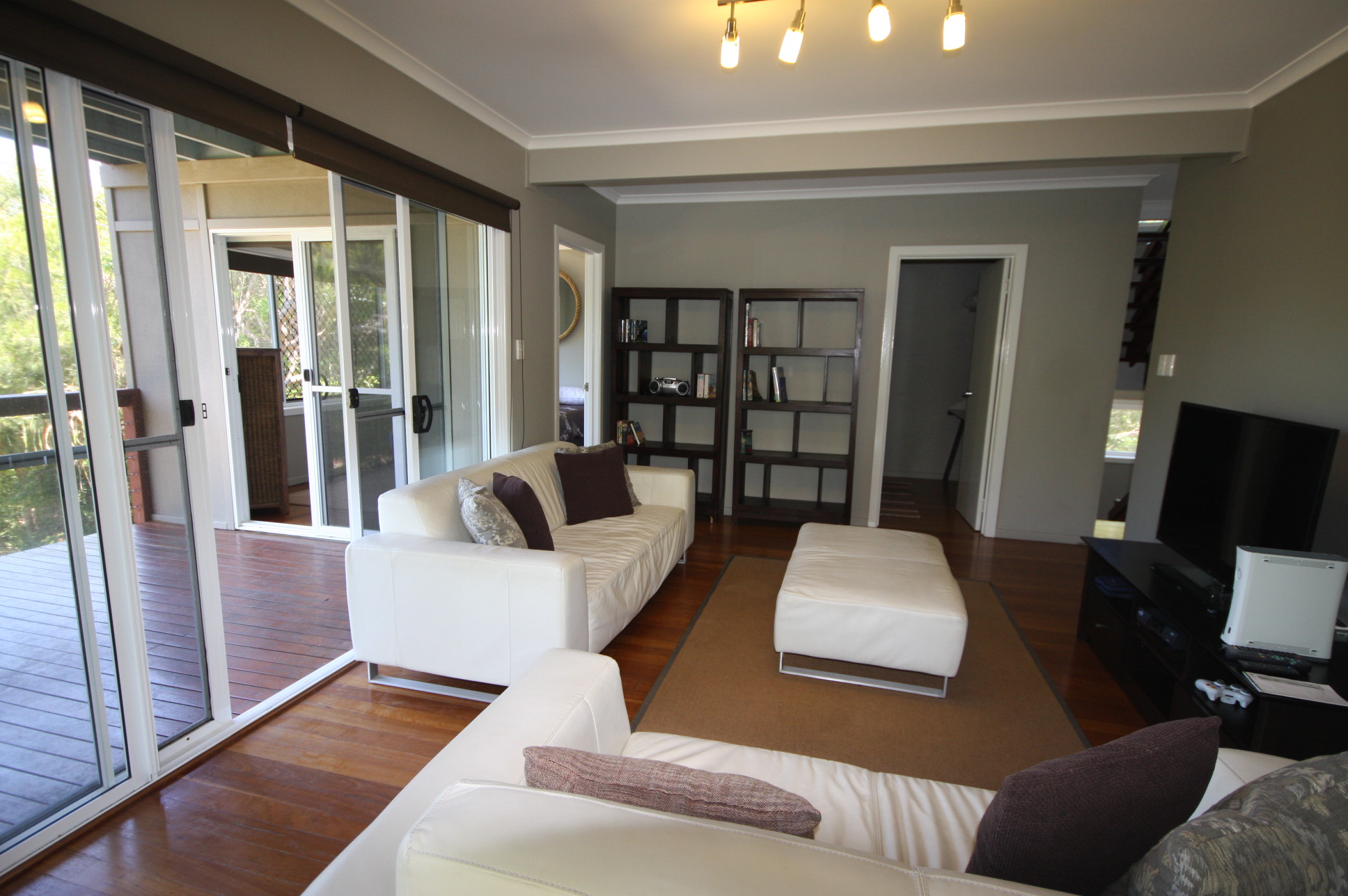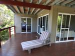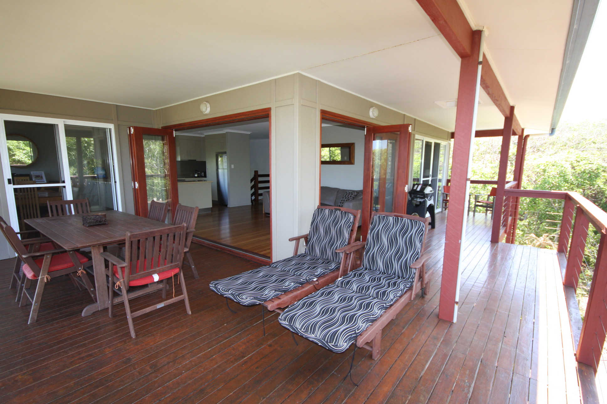 The definition of relaxing by the sea, come and enjoy this beautiful 4 bedroom home. While away the hours sitting back looking at the waves crash and feeling the sea breeze from the top balcony. Located at the end of a quiet cul-de-sac in the Rainbow Shores beachfront estate this home enjoys water and treetop views and is less than 150 meter walk to the beach.